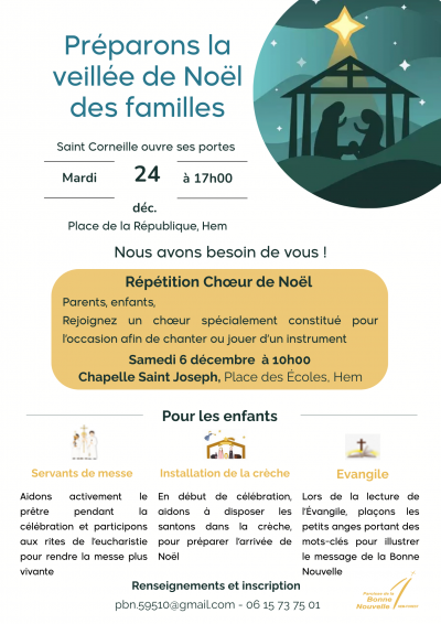 La veillée de Noël des familles aura lieu le mardi 24 décembre à 17h,